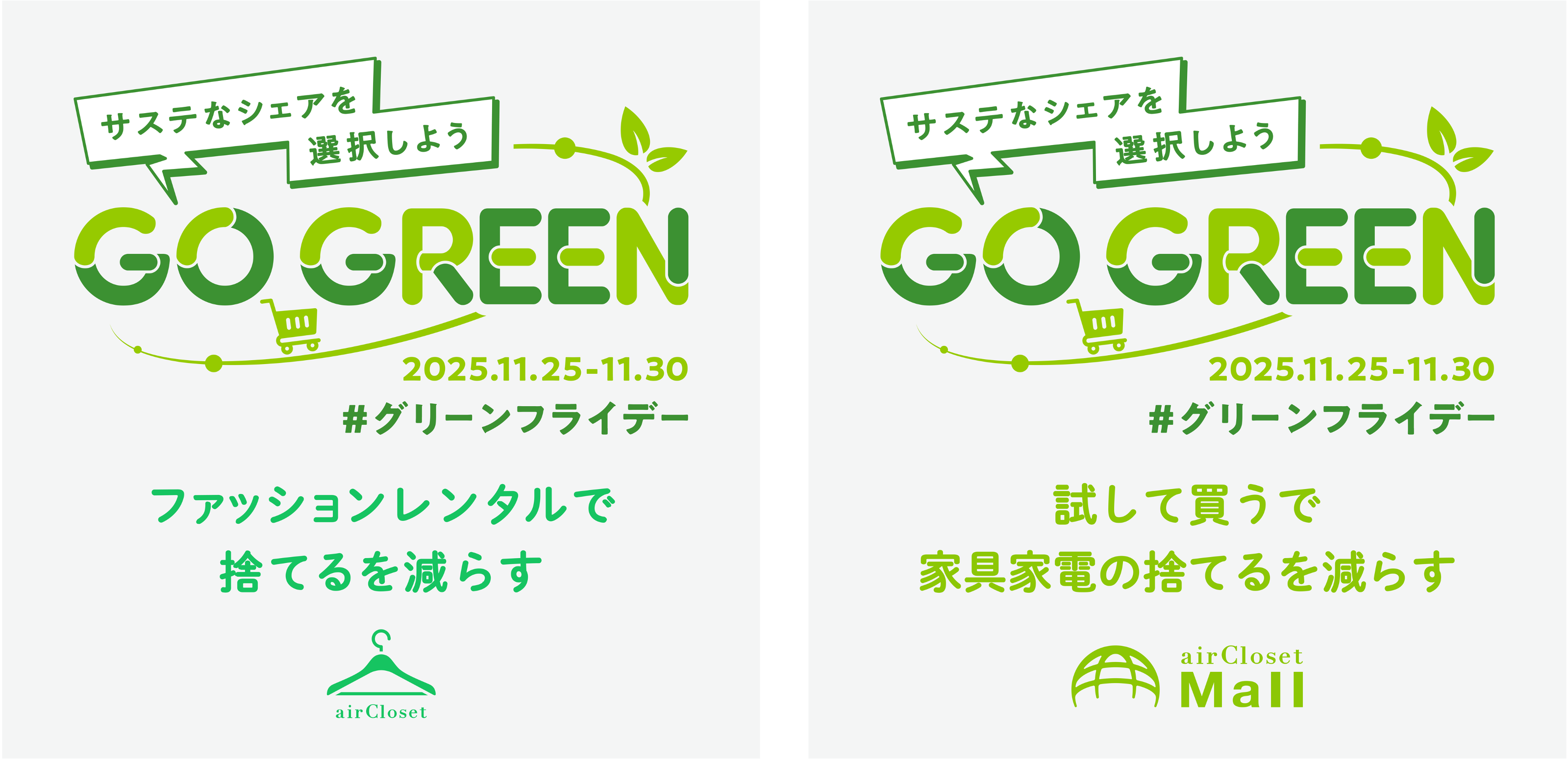 株式会社エアークローゼット(本社:東京都港区、代表取締役社長 兼 CEO:天沼 聰)は、サステナブルな消費のムーブメントであるグリーンフライデー(11月29日金曜日)に合わせ、一般社団法人シェアリングエコノミー協会様(以下、シェアエコ協会様)およびシェアリングサービス事業者19社とともに、環境に配慮した持続可能な消費行動について考える「GO GREEN プロジェクト」を実施します。