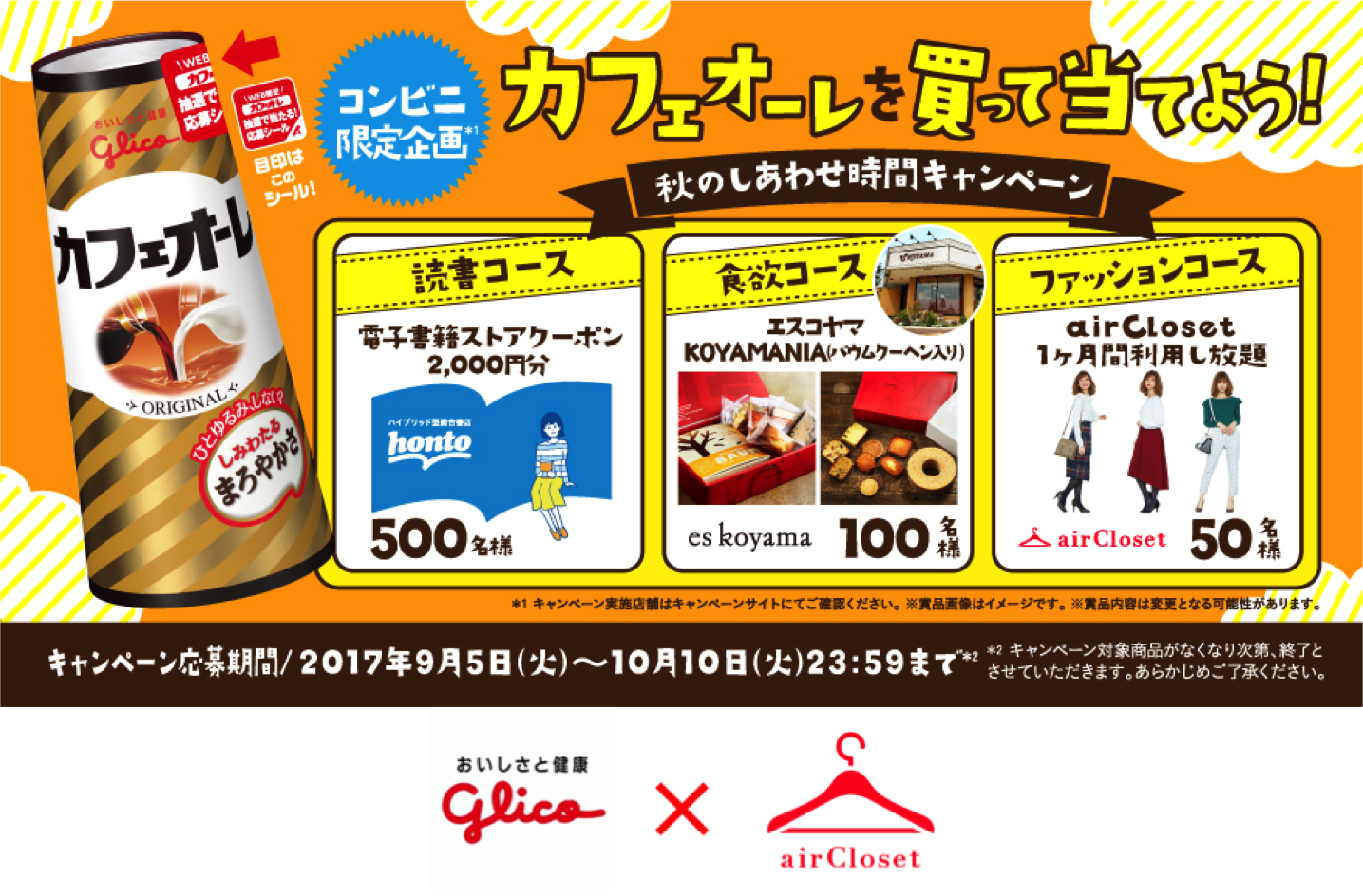 エアークローゼットがグリコ「カフェオーレ」の「秋のしあわせ時間」キャンペーンに賞品協力